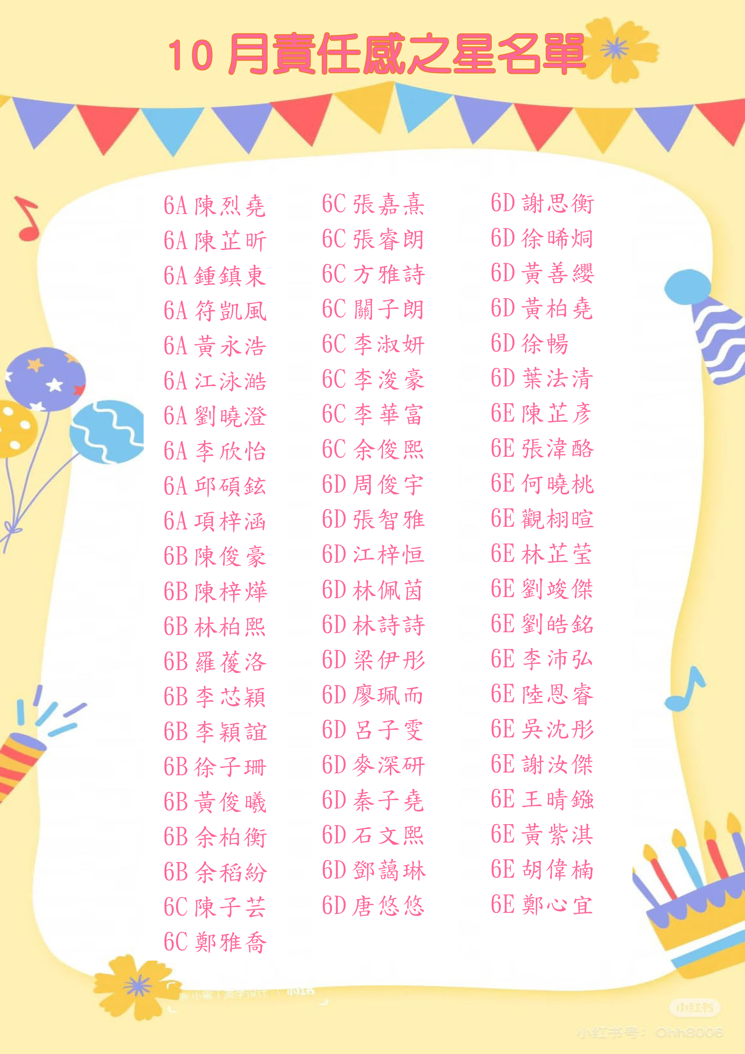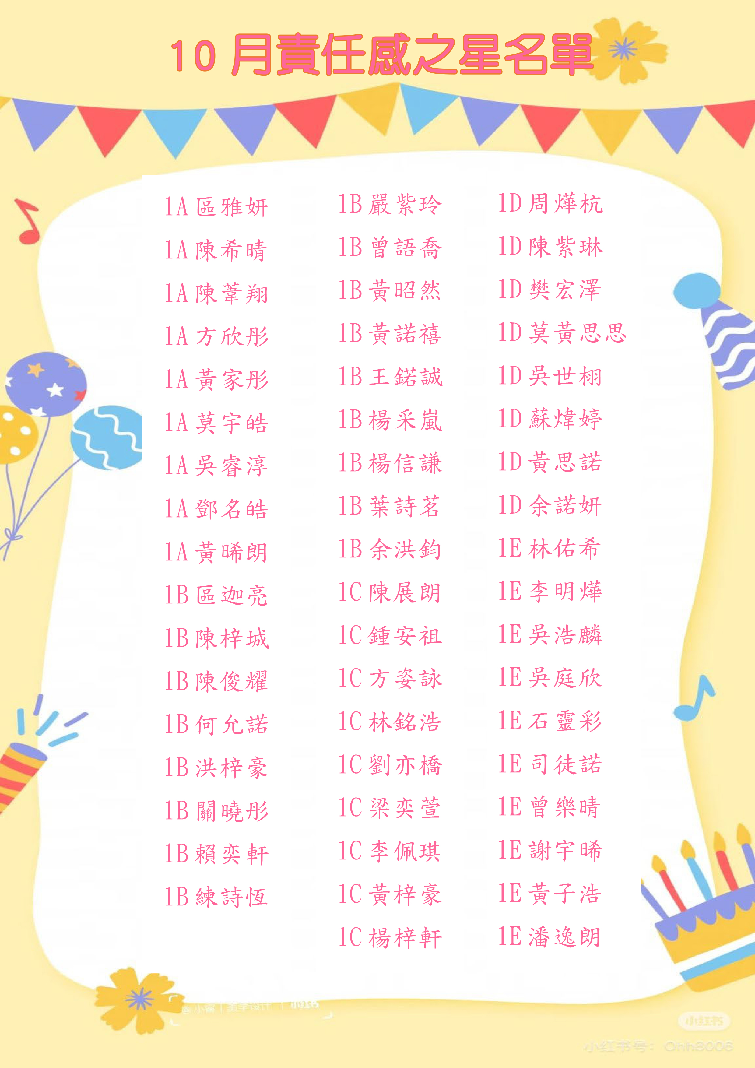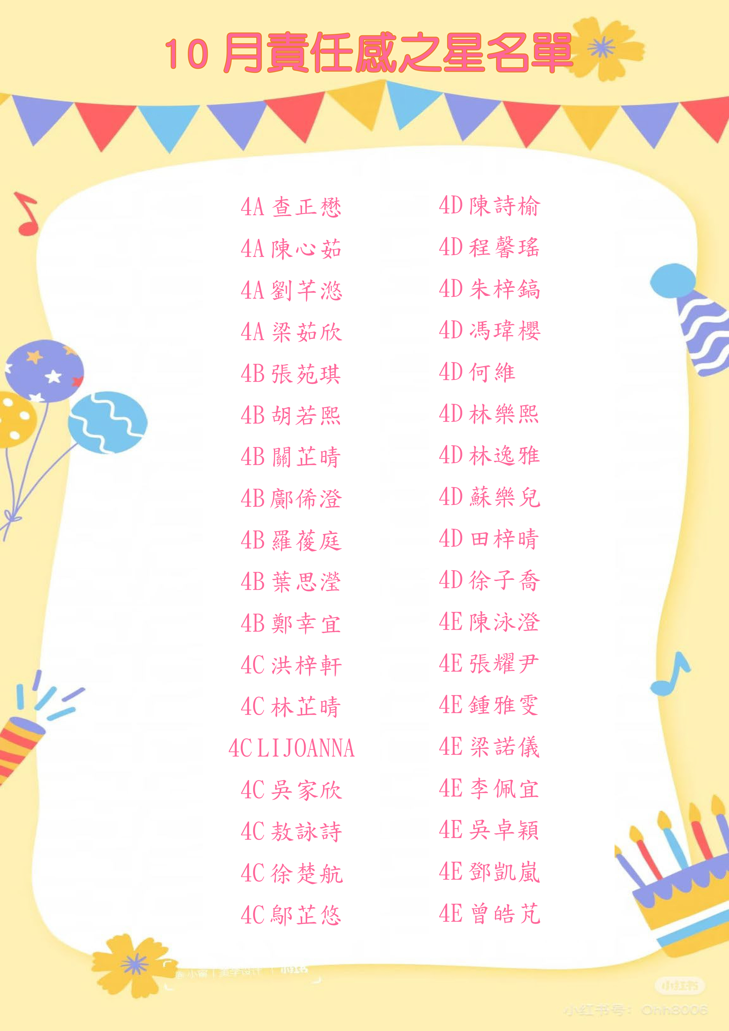 《摘星計劃》10月份品格之星 - 責任感之星