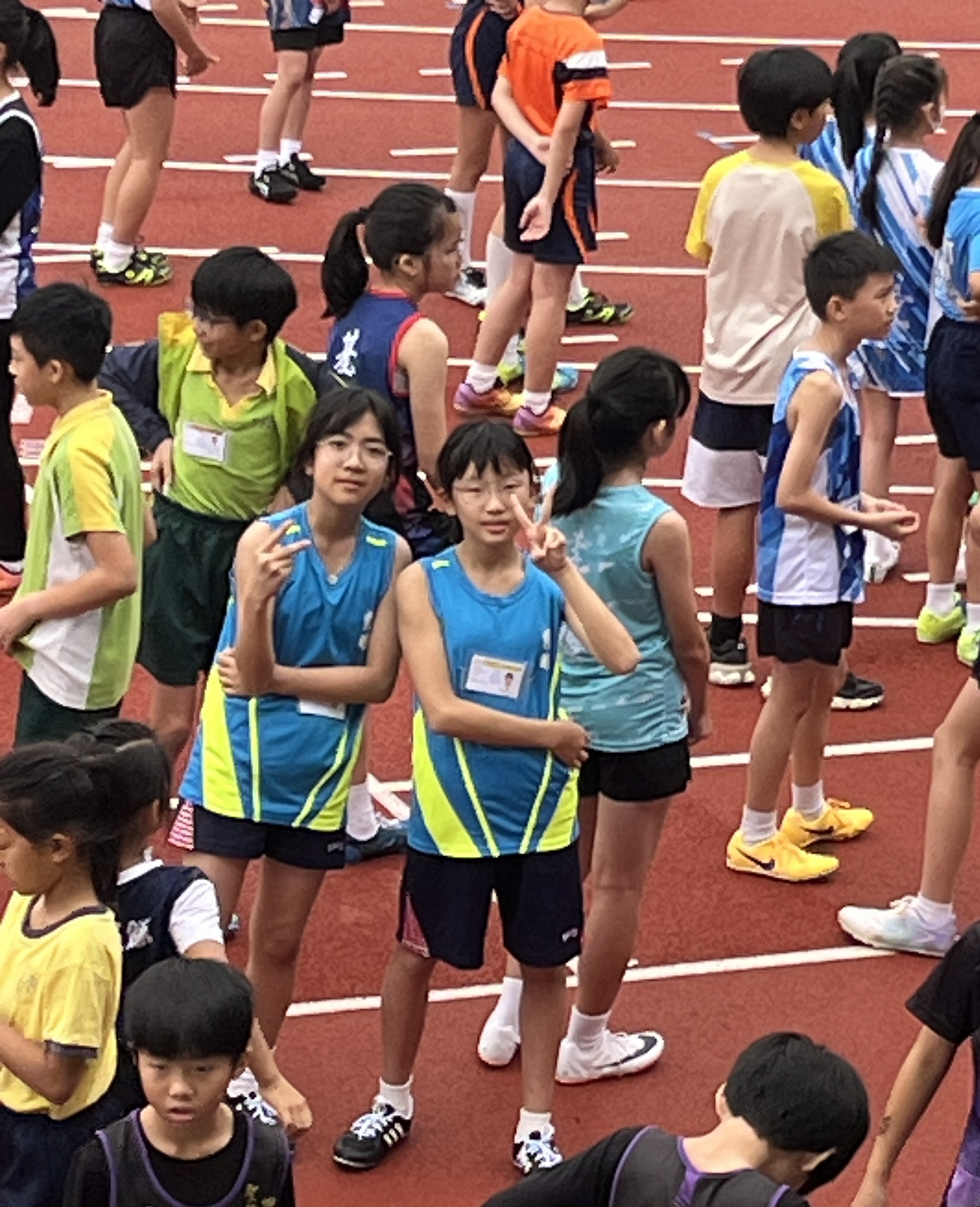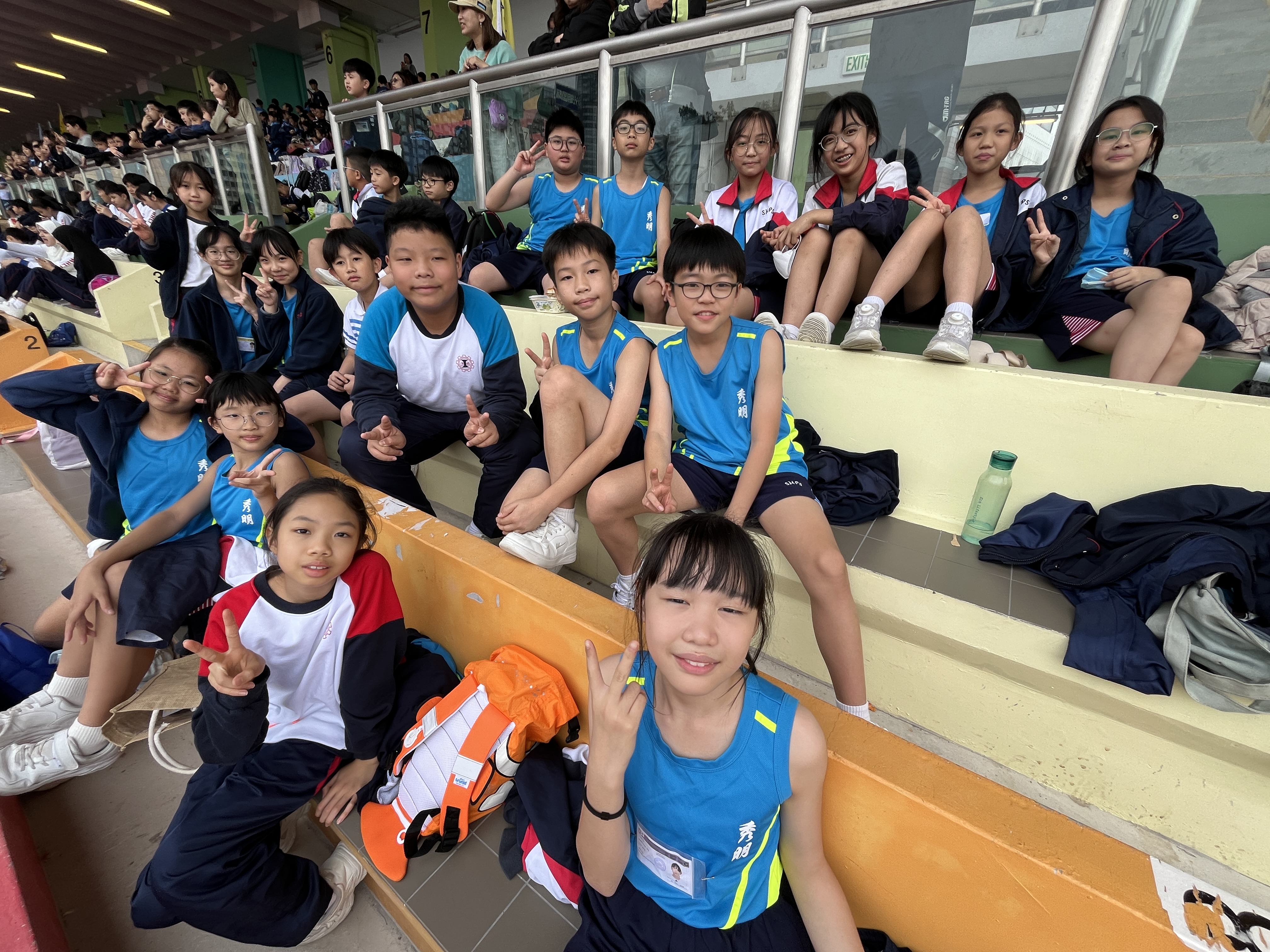 齊聚賽場,參與九龍東區學界田徑比賽。