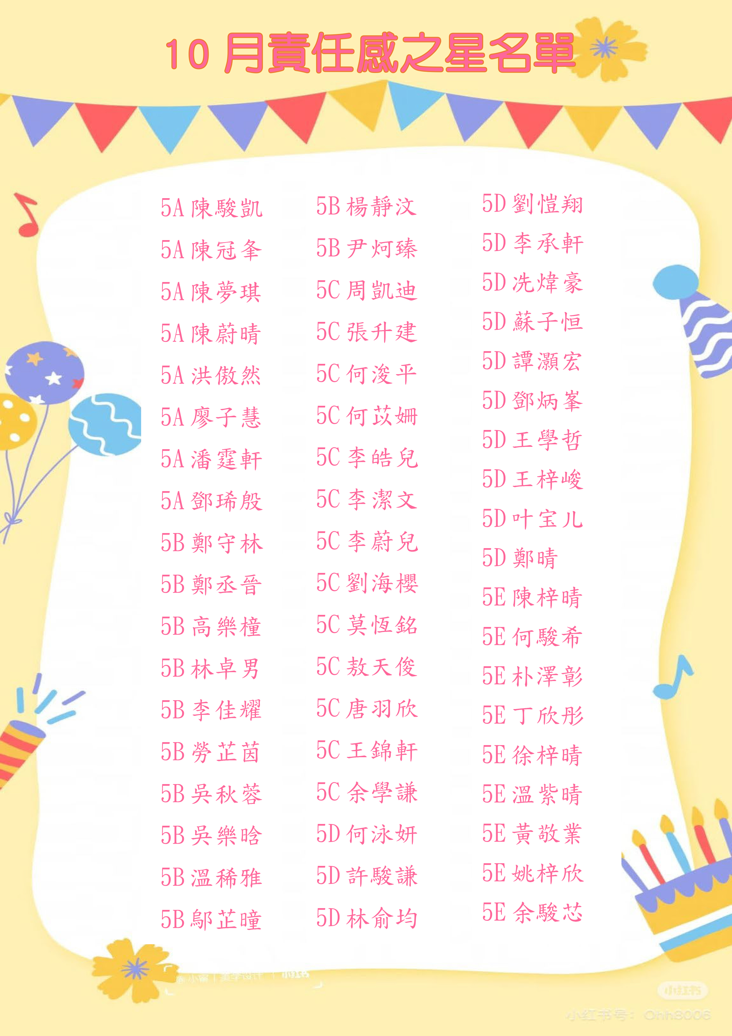 《摘星計劃》10月份品格之星 - 責任感之星