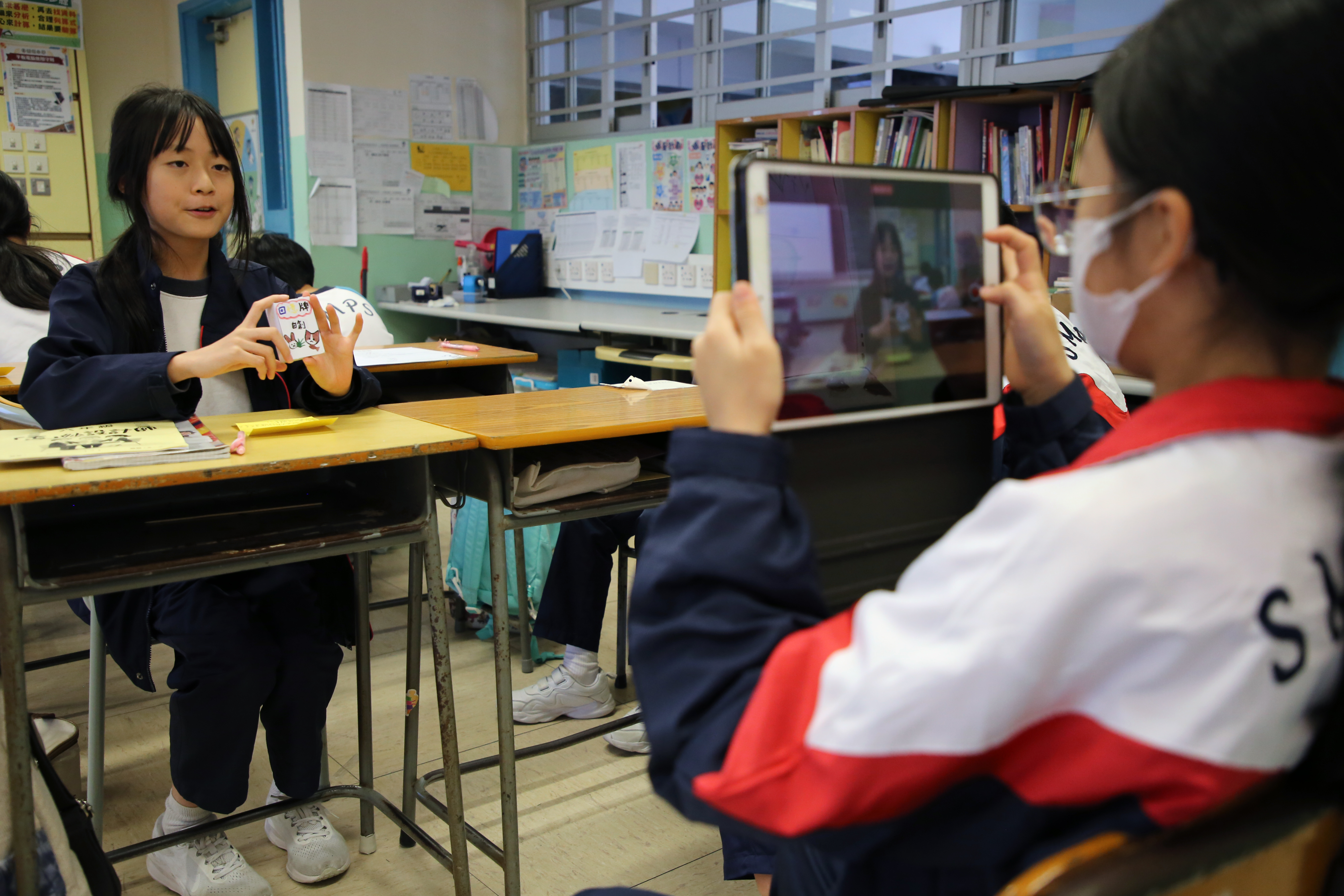 ▼ 學生分組向長者介紹作品 ▼
