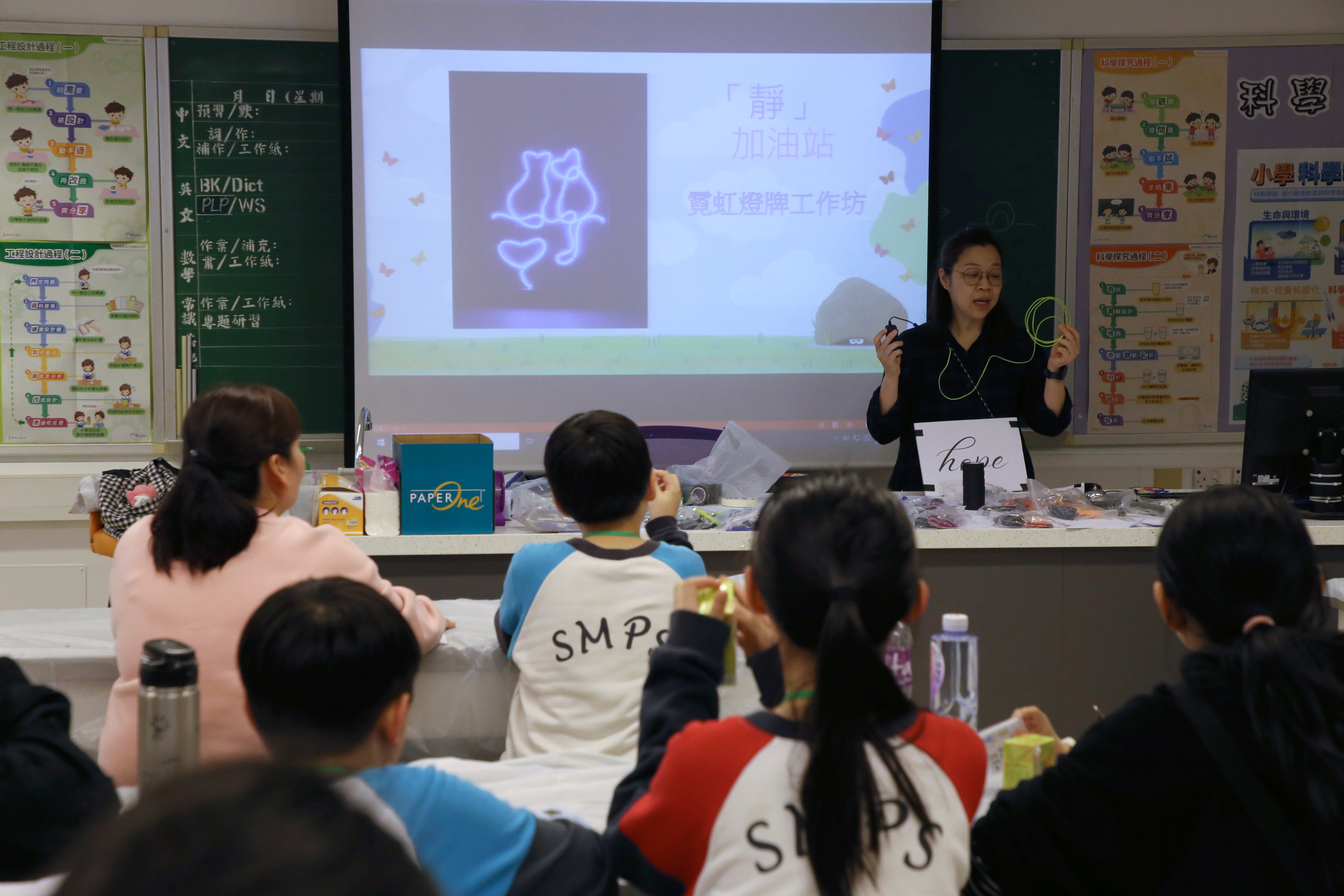 大家先透過競技活動舒展身心,再製作LED燈牌為自己打打氣。