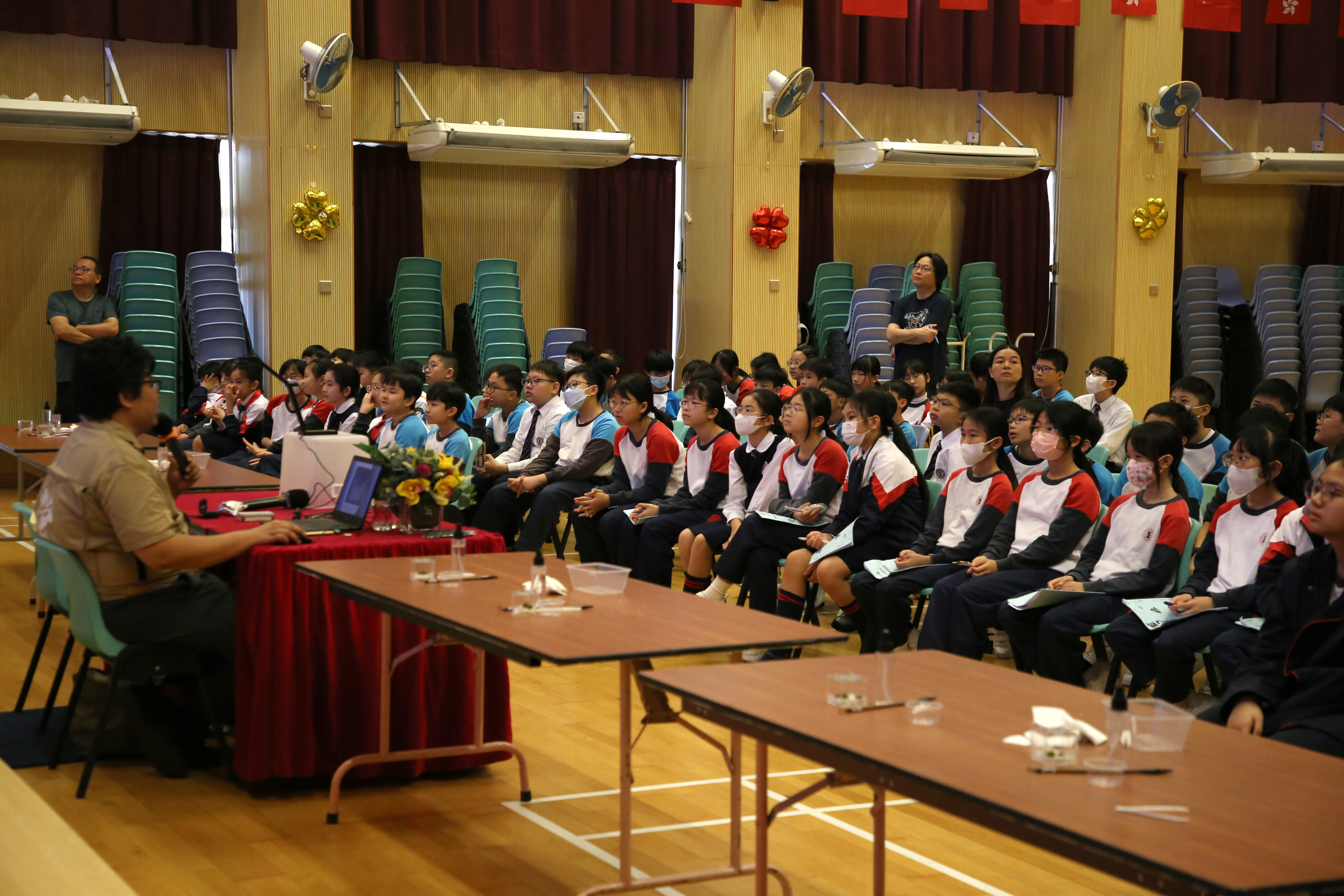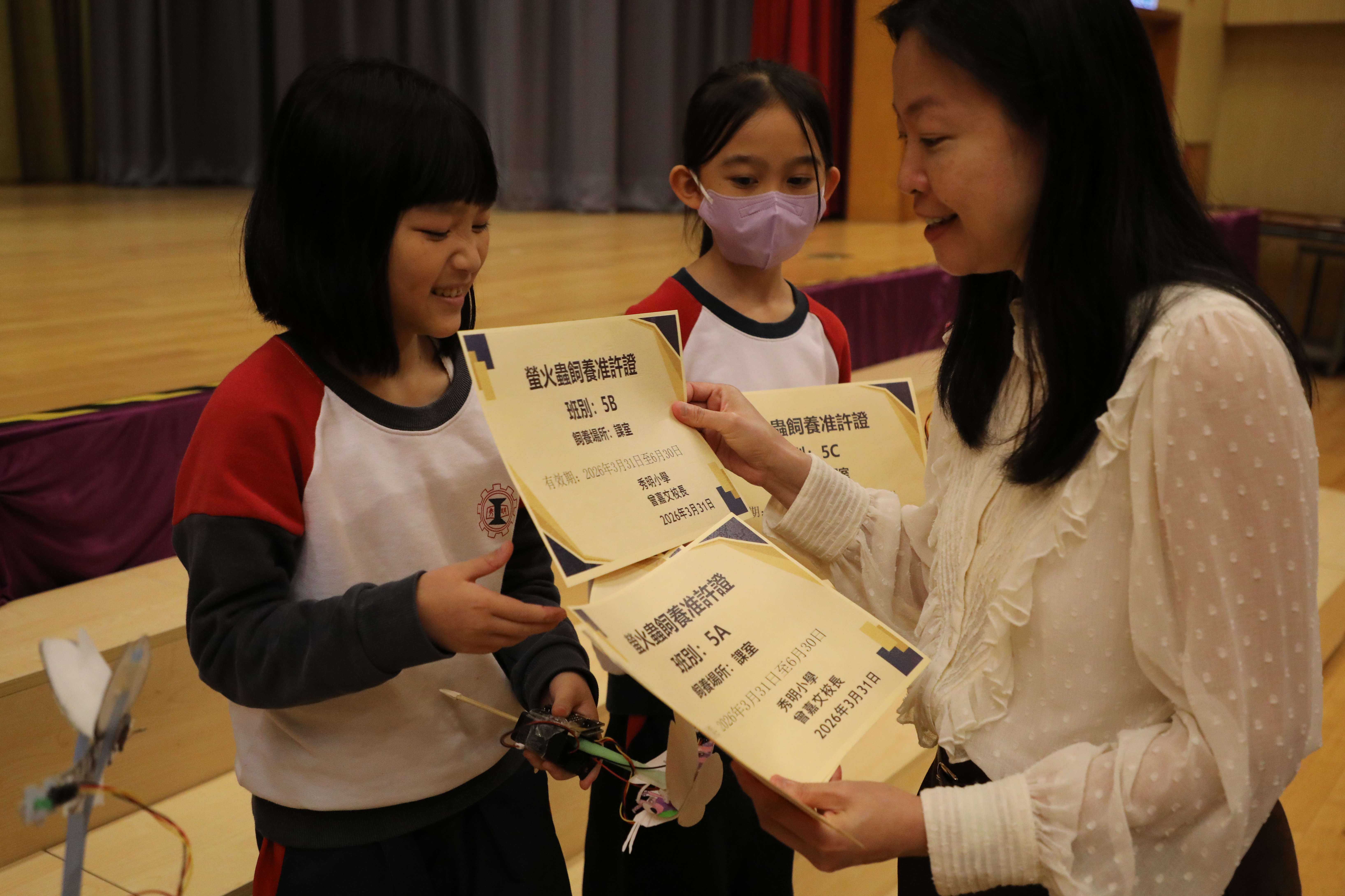 亮燈儀式後,同學更向退休教工展示飼養方式與守護自然的承諾。