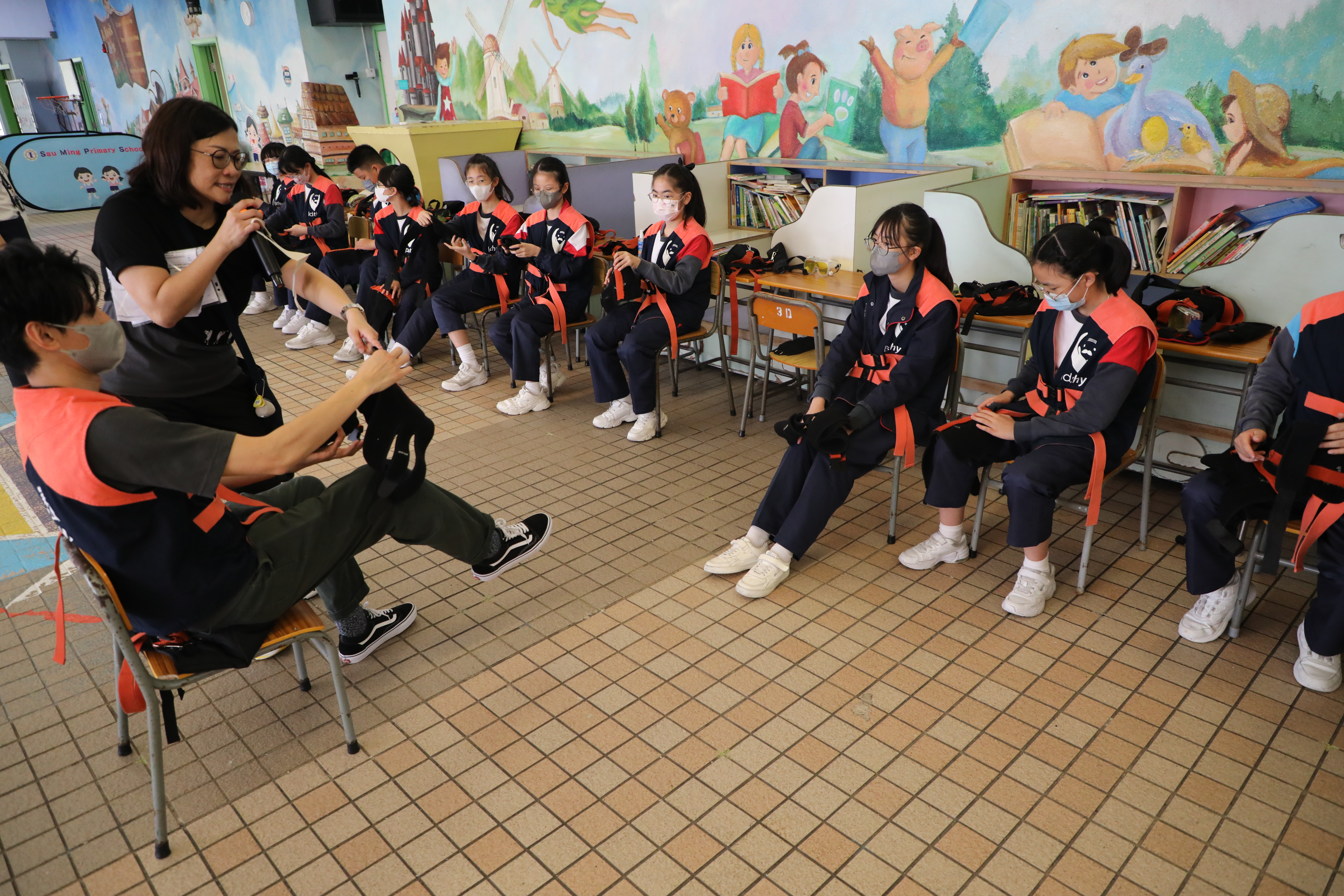 活動中同學穿上「長者衣」體驗生活挑戰,